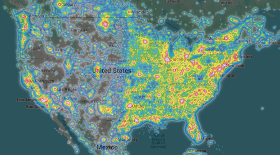 In many locations, the number of visible stars has been reduced by half or more. Only the brightest objects are easy to see, the Milky Way and other dimmer objects are invisible.